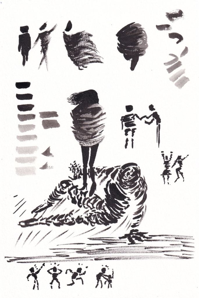 Outline and flat color on digital canvas.