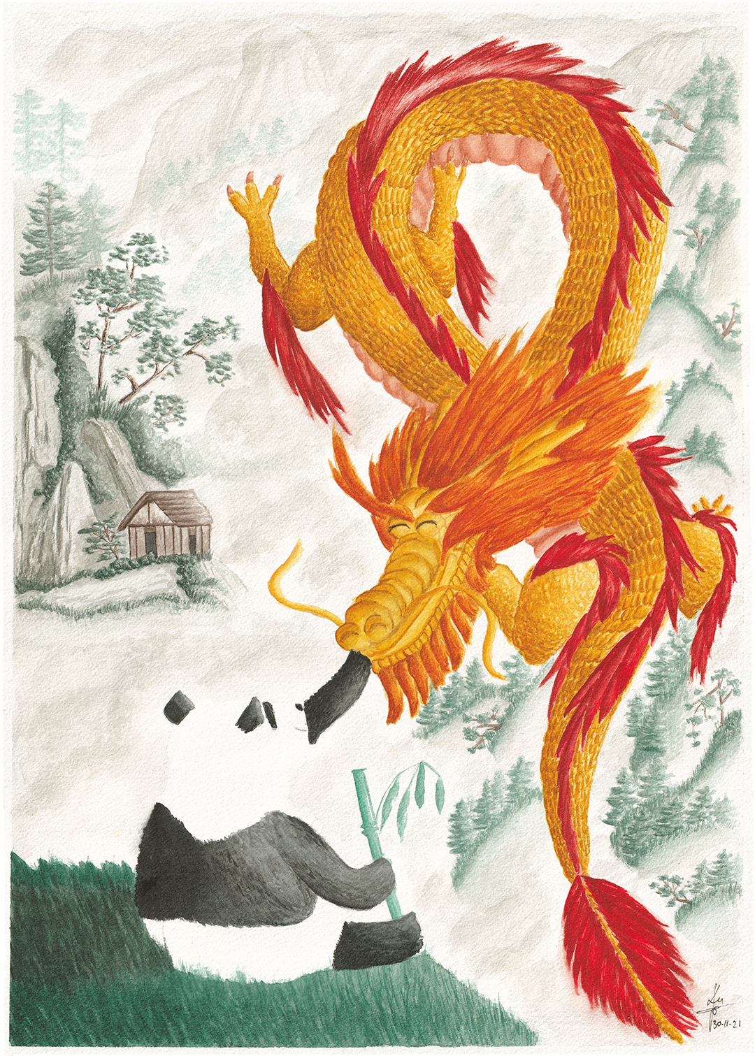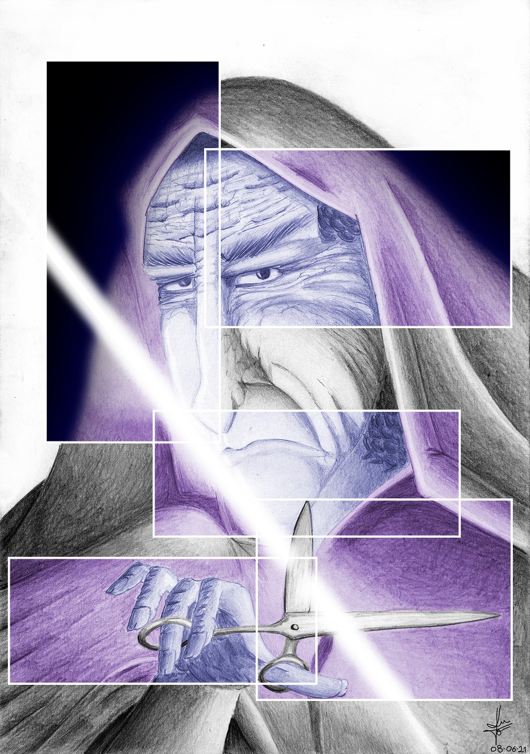 Graphite on paper, digital coloring and processing.