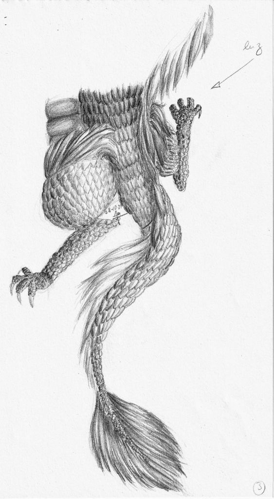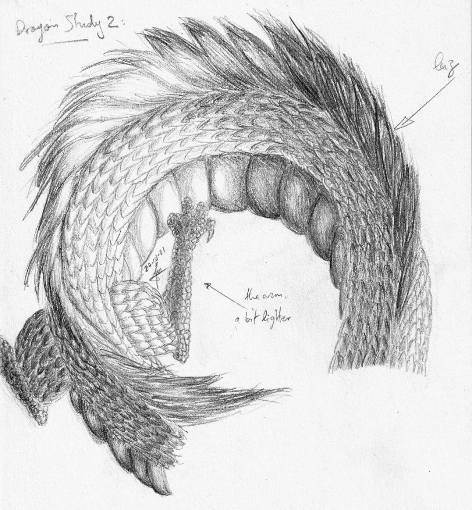 Preliminary studies for the dragon’s scales – graphite.