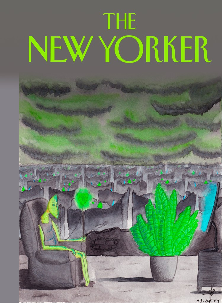 DEMO for a cover the magazine “the New Yorker” – watercolor and color pencil on paper and digital processing.